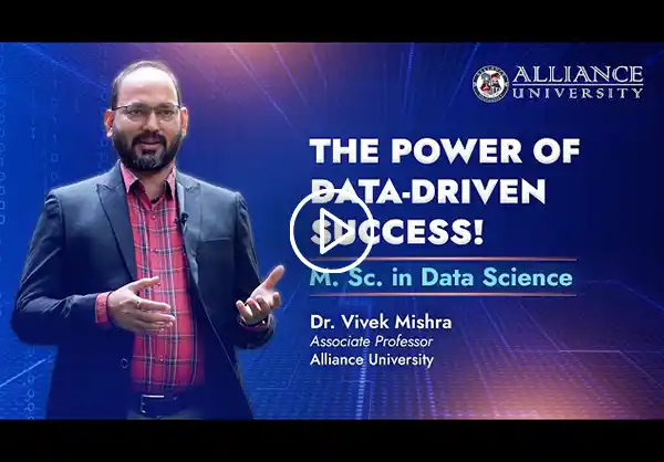The M. Sc. programme in Data Science offered by the Alliance School of Sciences is designed to mold graduates into data science leaders with the right balance of statistics and analytics in diverse fields of applications. The programme gives students exposure to the frontiers of statistics, machine learning, big data analytics, and artificial intelligence, helping them to acquire experience in solving pragmatic problems with the help of a range of data science tools and techniques.